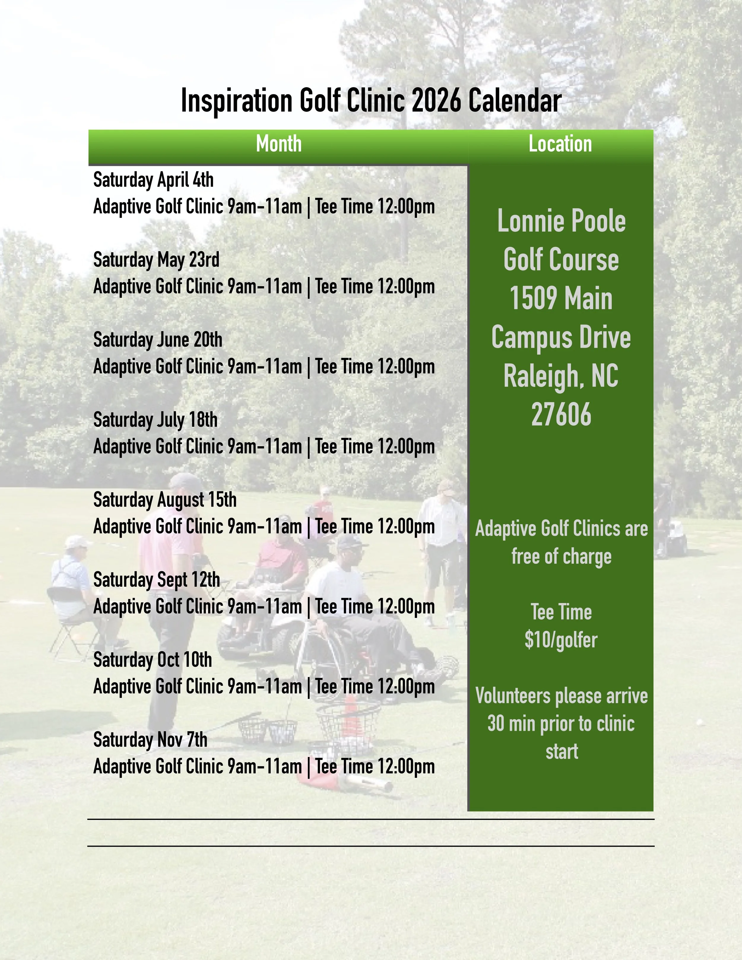 Download or Print the 2026 Inspiration Golf Clinic schedule for home!